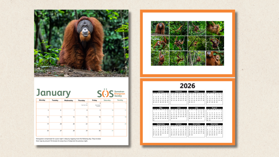 When you purchase this calendar, you’re not just adding a stunning piece to your wall – you’re joining the SOS mission. 100% of the profits go directly to conservation work in Sumatra, helping us protect the rainforest and its incredible wildlife.